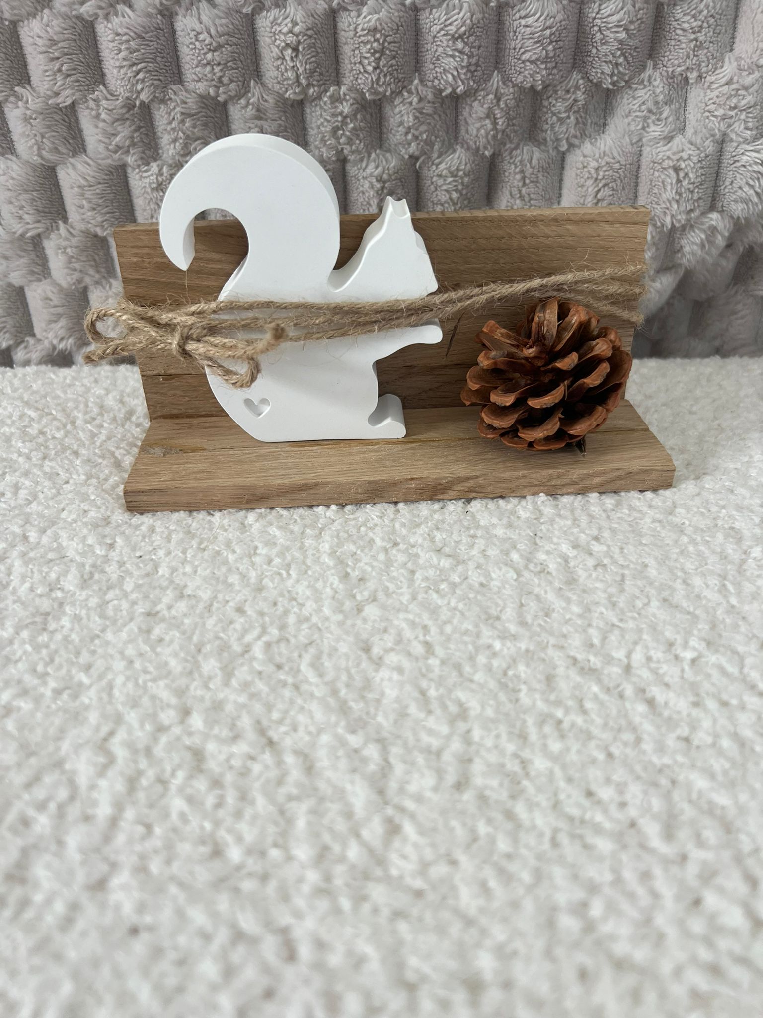 Eichhörnchen aus Gips in Holzverkleidung Kleine Abweichung vom Foto möglich.