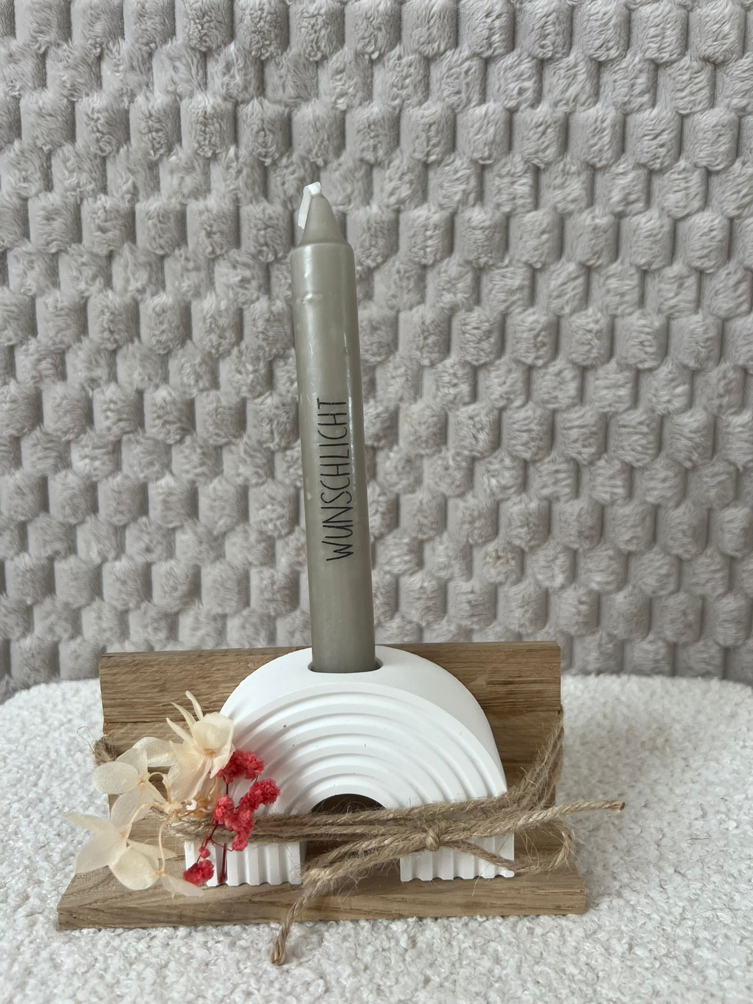 Gips Regenbogen mit Holzverkleidung. Kerze Auswählen: Weiß/ Grau Spruch Auswählen: Wunschlicht o.ä / Motivationsspruch o.ä Kleine Abweichungen vom Foto möglich.